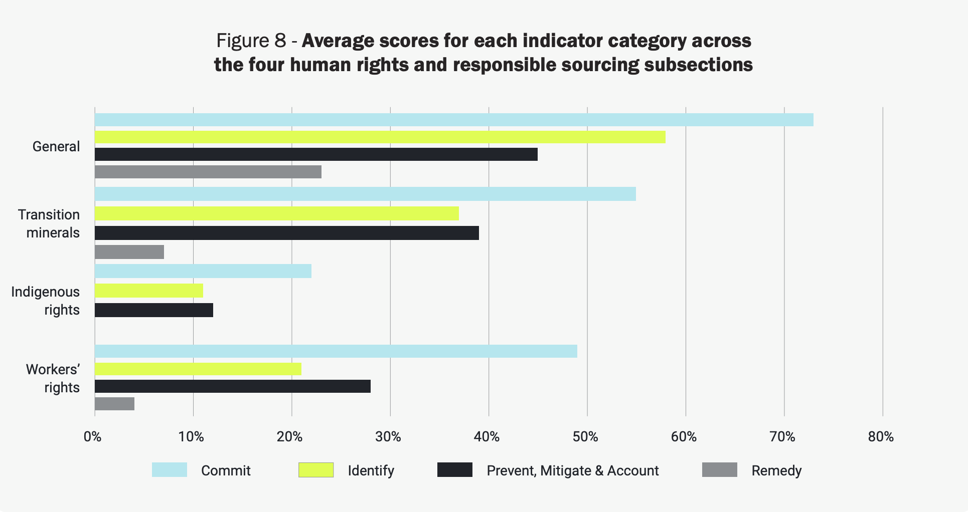 This year, indicators on Indigenous Peoples’ rights were expanded to include involvement of Indigenous Peoples in due diligence processes, as well as processes for operationalizing free, prior and informed consent (FPIC) requirements and addressing FPIC breaches.