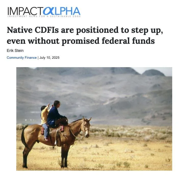 “There is a way to invest now to create alpha. And Indian Country is ready,” says Kate Finn of the Tallgrass Institute […] Finn urges investors to channel capital through CDFIs due to their strong community ties, flexible structures, and outsized impact.